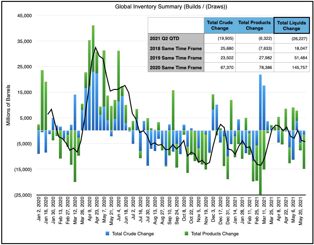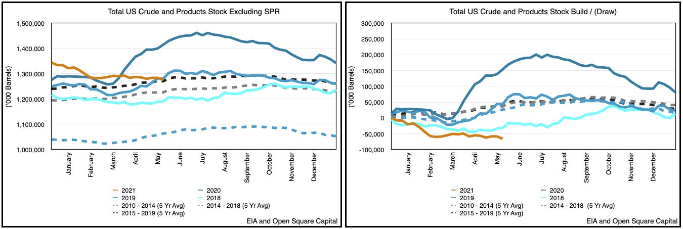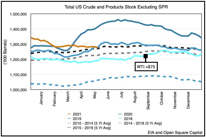 Unlike 2018, however, we’re drawing total liquids today (during a period where we should be building inventories), and we anticipate the draws should continue as demand climbs, but refineries only slowly ramp up.