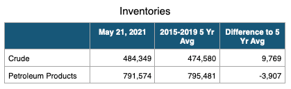 Both are at the 5-year average, which means inventories in the US aren’t completely out of balance. So as we kick-off our summer season with Memorial Day coming up and as WTI printed ~$67/barrel yesterday, our question becomes, will oil reach $70-80/barrel by Q3? Given our rates of draw and the trends, we think it’s likely.