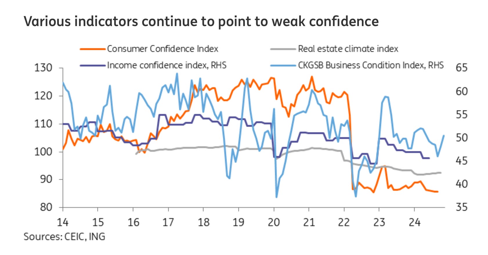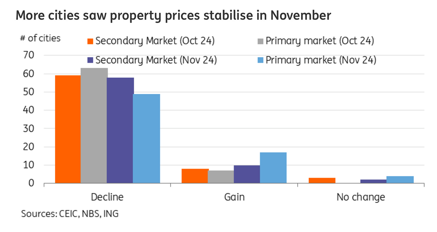 As for China? We were certainly wrong about its recovery in 2024, and with higher tariffs on the horizon it may pose another hit to their economy. Though in our opinion, trade doesn’t really die down, it gets rerouted. US consumers will still want what they want, so they’ll look for places to get it. Domestically in China though, the PBOC is prepared to act, and how they game out the stimulus could offset the headwinds if it spurs Chinese consumption. They will need to keep stimulating because consumer sentiment continues to be hampered by the falling property market.