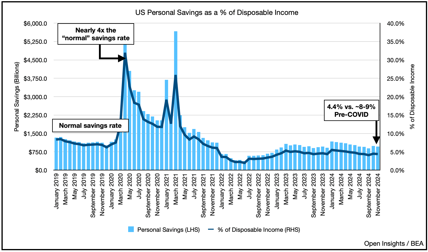 So as we ring in the new year, pay off those debts, and spend wisely. Consumers are in good standing, but as Trump 2.0 gets underway, so will Trump Trade War 2.0. Remember the last one took 2 years to simmer down, until COVID deprioritized everything. We think the US can withstand this go around, while the PBOC will rain money, but global trade will temporarily shake as the two largest economies and their silverbacks square off.