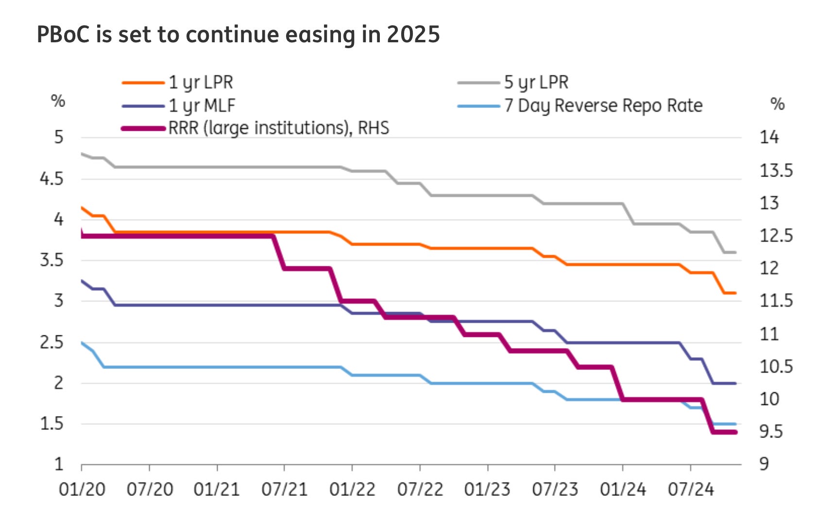 About the best thing we can say is that consumer confidence is already near their lows, so it is possible that there could be some turnaround there. Again that will depend on how tariffs play out, but we reiterate, those are now expected, and supply lines are vastly different than they were before Trump 1.0 and COVID. For now, the soil is well watered as the PBoC have continuously eased rates on the monetary front, and as they stabilize the local governments, a consumer led rebound via fiscal policy would be the next step.