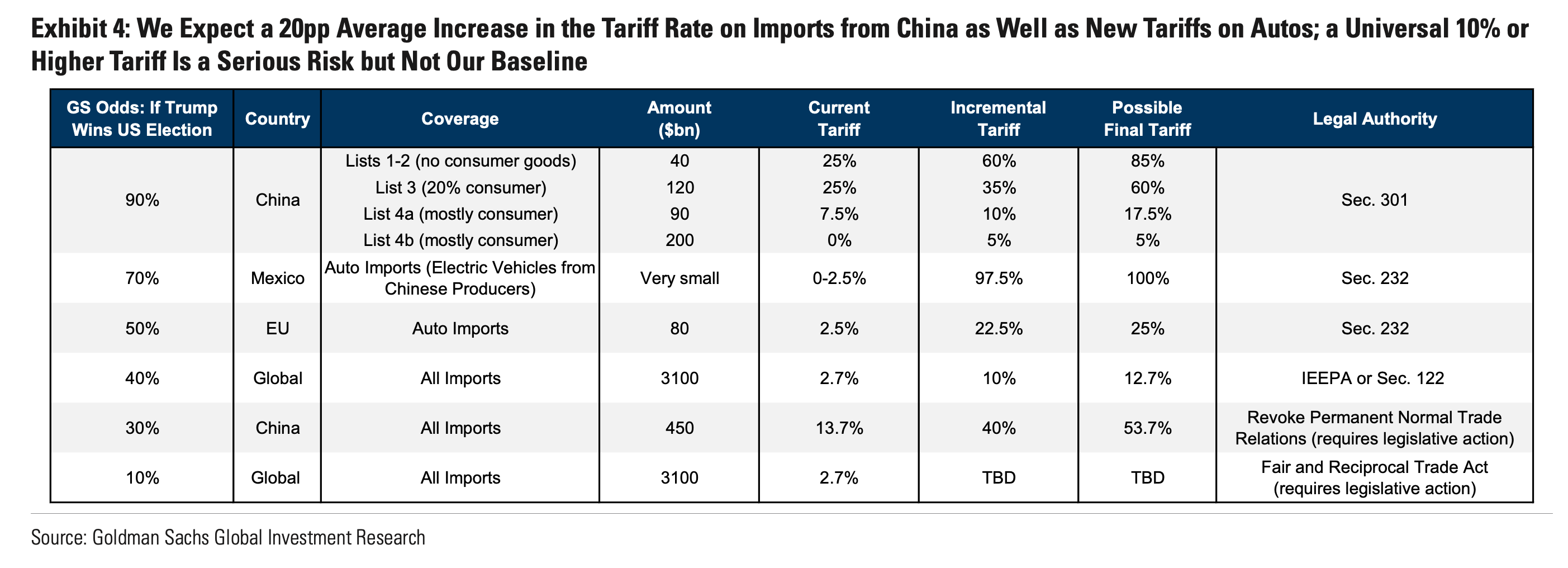 Having said that, China is a different issue altogether. We do think tariffs there will increase considerably, some to ~20% and others to ~60-85% (though that list has no consumer goods). We think that’s one of the main reasons why China has held off on big fiscal stimulus. First, determine the implications of the tariff and then prepare the stimulus to offset.