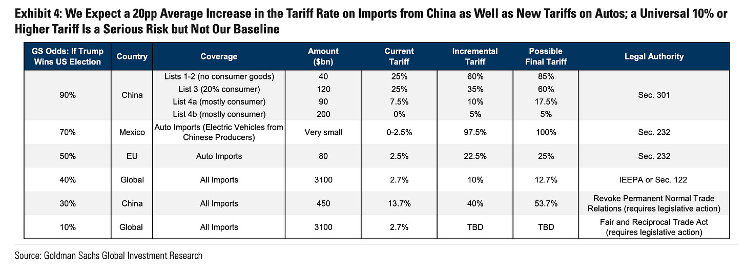 Tariffs? Universal? China? Will a 10-20% universal tariff apply? Doubtful. Washington Post reported on Monday that said his aides were exploring tariff plans that would cover only selected sectors that are critical to national or economic security. Quickly, Trump walked back the report in a posting on social media. We think advisors behind the scenes are attempting to nudge the President-elect in a different direction than the wholesale and indiscriminate tariff policy that may do more harm than good. We question whether the aides would’ve had freedom to explore the alternative policy without his Chief-of-Staff’s approval, and whether there’d be a leak about it unless they wanted it to be known that lower tariffs (or targeted tariffs) were an “option.” Remember, tariffs were floated as a negotiating tool, to “level the playing field,” by the Trump administration as a way to penalize and bring other countries into more US-favorable trade deals. What they’d want to avoid is to raise costs on US consumers, which would create unnecessary economic (read: political) backlash if prices and inflation were to spike. It’s interesting that the market rallied strongly on the initial WaPo reporting, then selling off on the Trump message, which indicates that the market is already pricing in the universal tariff. We surmise anything more watered down will provide a tailwind to the market. It’s also important to note that the tariffs we’re talking about are incremental. There already are certain tariffs in place, and Trump would be layering additional ones on.