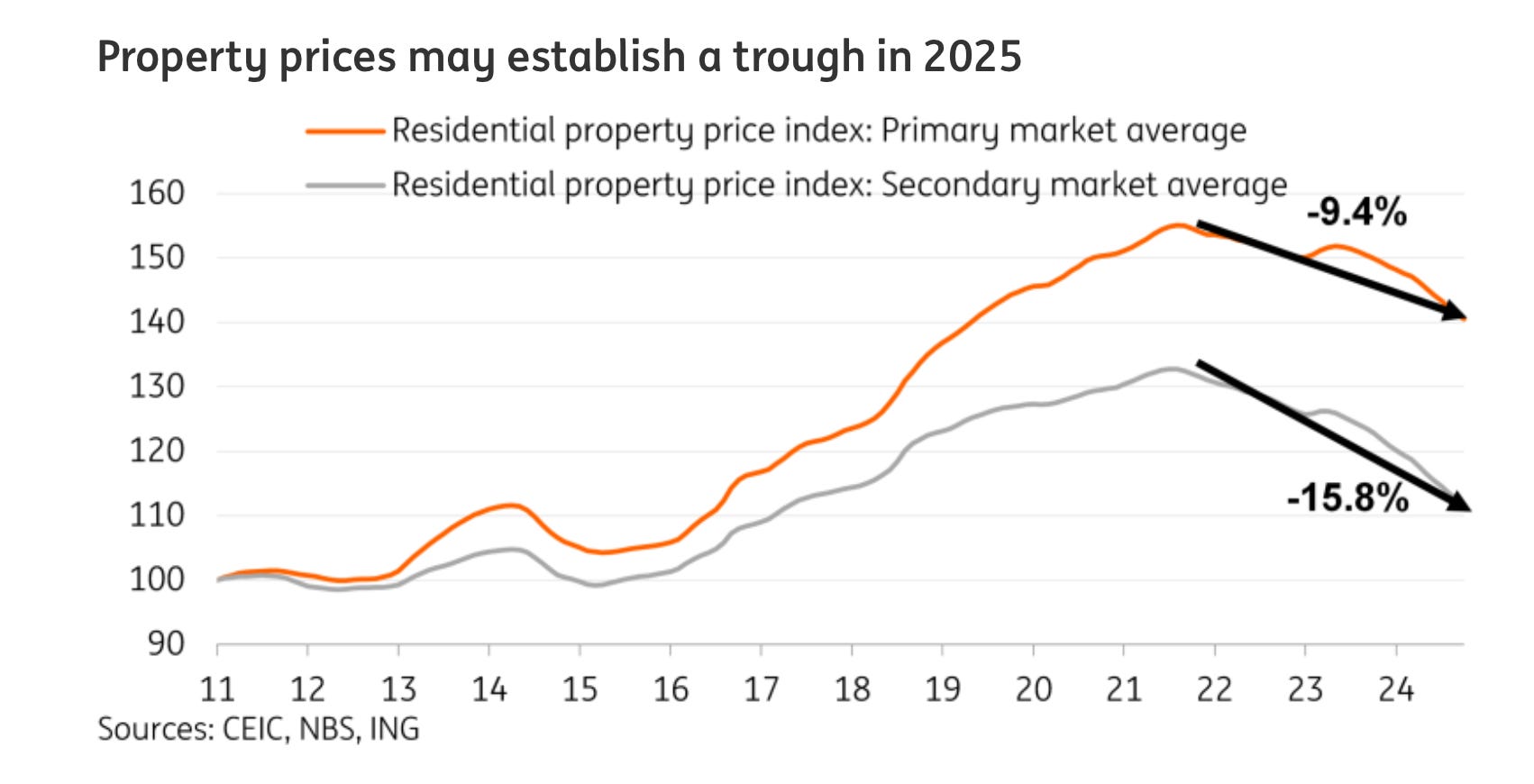 Though prices do appear to be bottoming as recent support measures trickle through.