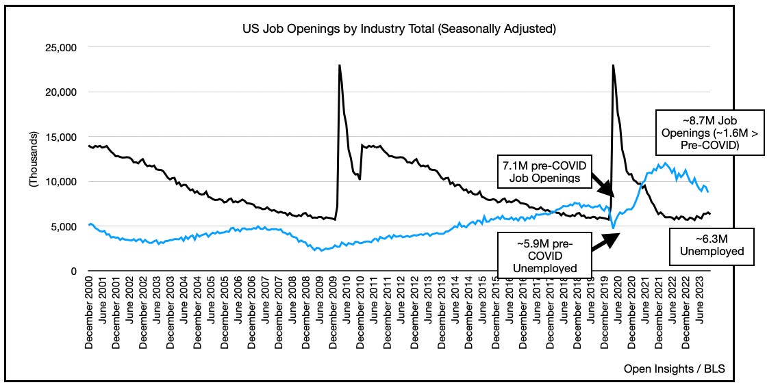 Tightening financial conditions, however, leg into the economy at a slower pace. The impact though eventually happens (6 to 18 months depending on which analyst you follow, we’re close to month 12). It’s why you can see the “negative” component contributions in the LEI waterfall. Capital tightens, liquidity recedes, big and small orders fall. As corporate sales and profitability decline, businesses begin cutting expenses to right size their businesses. We’ll delay consulting services, cut/defer capital expenditures, and separate out “nice to haves” vs. “need to have” things. Eventually, and usually only as a last resort, when the low-hanging fruits have been harvested . . . we begin layoffs.