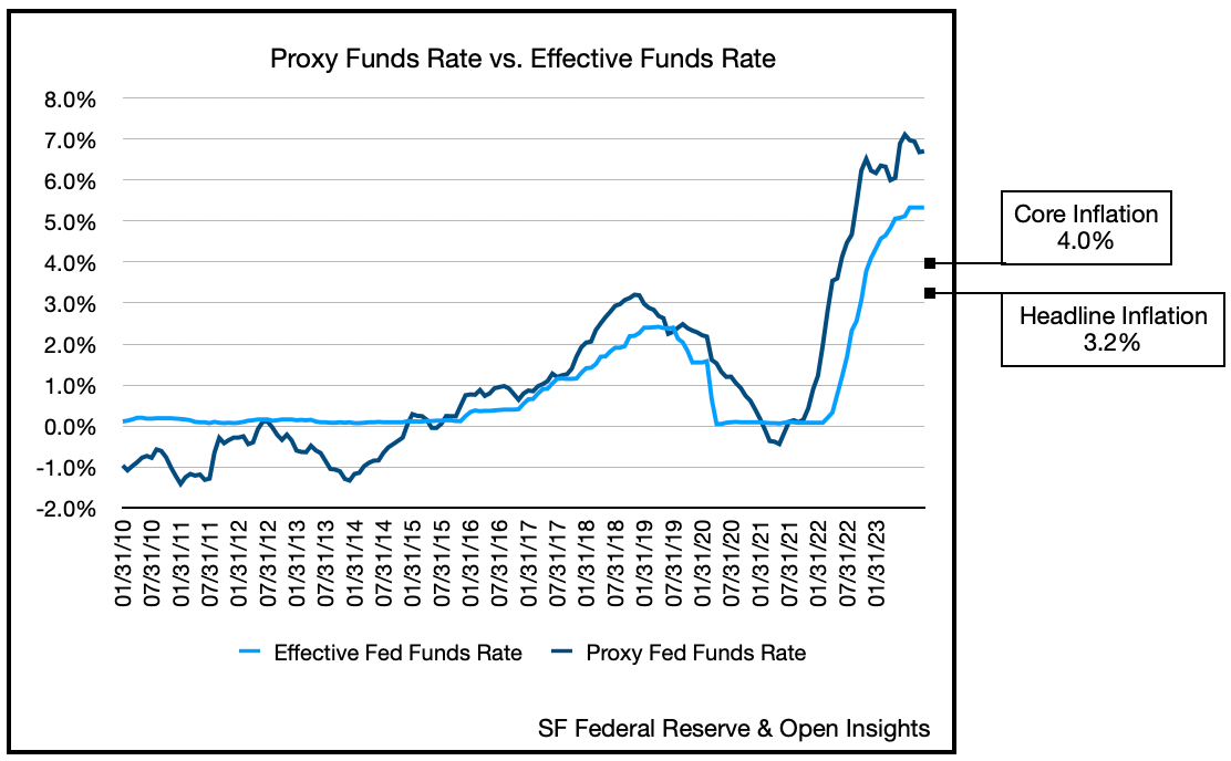 Overnight rates (i.e., the fed funds rate) though are running around 5.5%, but they “feel” much tighter at 6.7%.