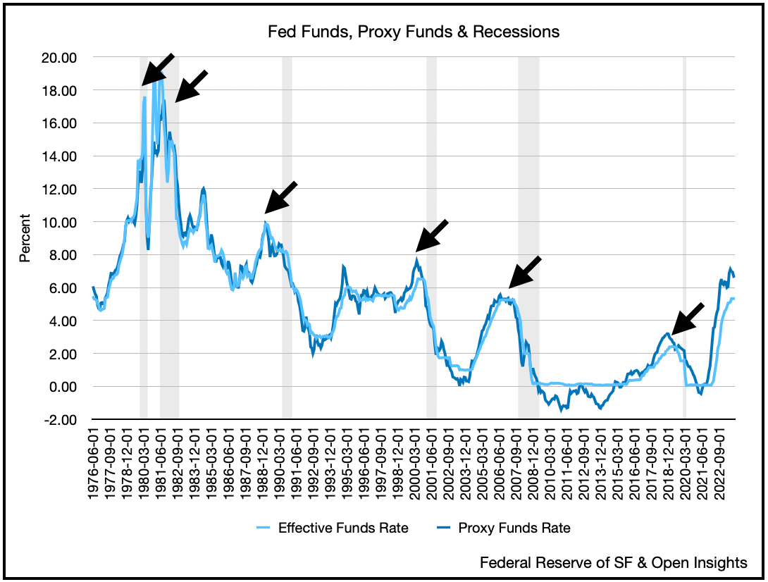 3. Wrongly assuming that Fed Funds Rate of 5.5% would damage the economy and cause a severe recession while the rate of inflation, 3.2% today and 3.6% on the average over the last 50 years, was 13% in 1981 when FED Chairman Volker tamed it by creating a recession by jacking the Fed Funds Rate to 22.36% effective rate.