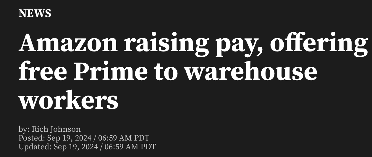 Amazon workers getting $1.50/hr bumps to $22/hr (i.e., $45K a year) . . .