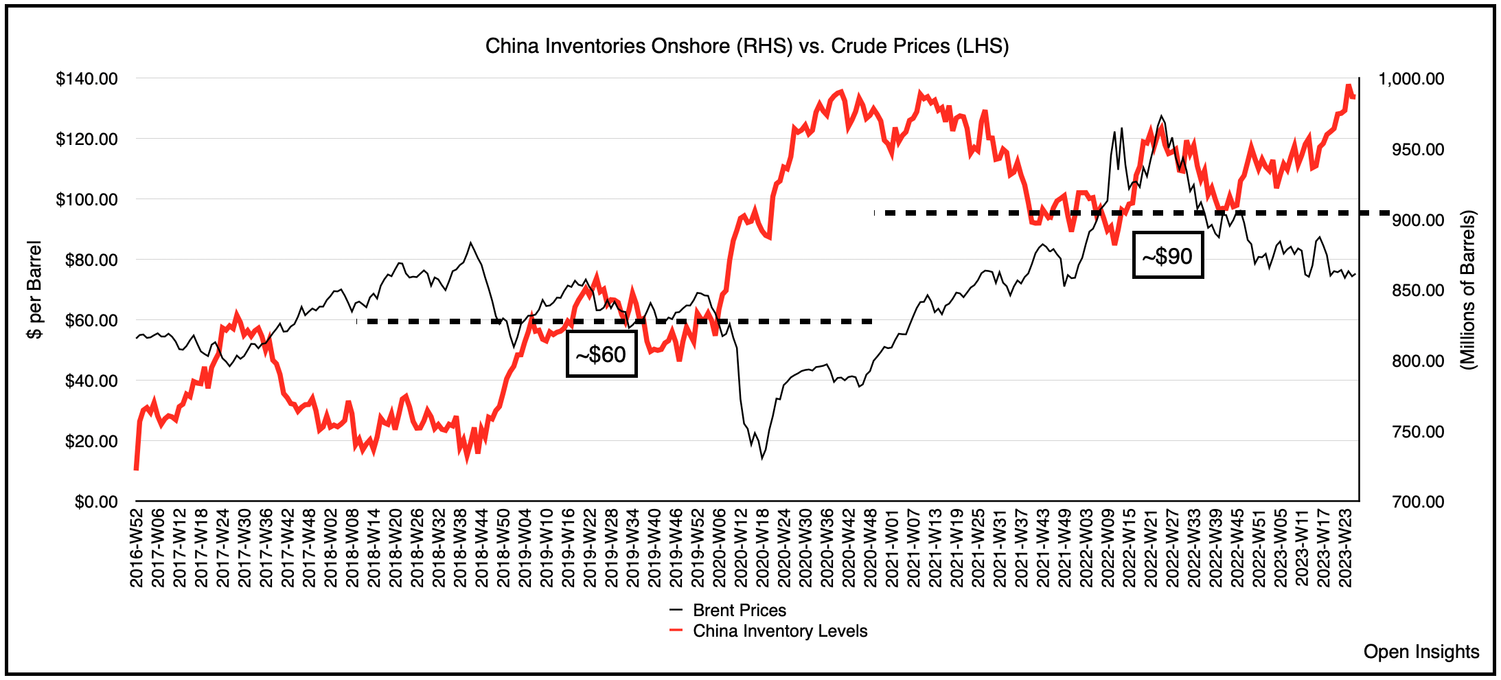 You ever pull up a chart to see what that looks like? China restocks when it’s low and destocks as oil prices rise.