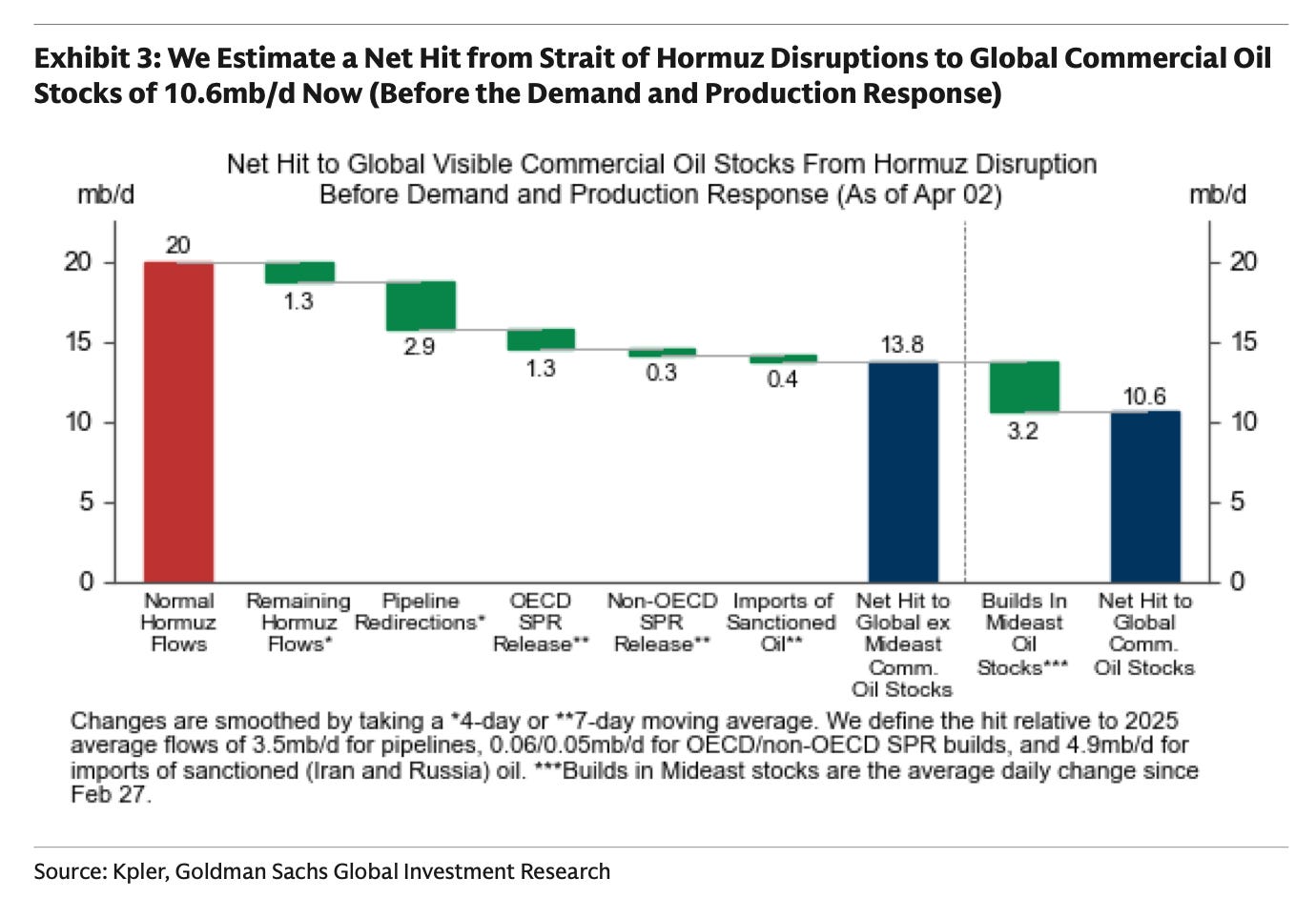 Inventories - there’s also a perception that because there’s so much inventories on land and on-the-water, we can easily drain and handle a 1B barrel drawdown. That’s an illusion. If we continue this war until mid-April, we’ll have exhausted a significant amount of oil-on-water, and land inventories. By the end-of-April, analysts anticipate that close to 1B of barrels of oil are lost for the entire year when all’s said and done. This isn’t unreasonable given the 10-11M bpd of shut-ins, coupled with a slow logistical return. None of this is taking into account any damage to field integrity, etc. for oil fields that have been shut-in for so long. Kuwait estimates it would take 3-4 months to bring production back online. Hardly surprising as you’d need to repressurize the field and conduct tests.