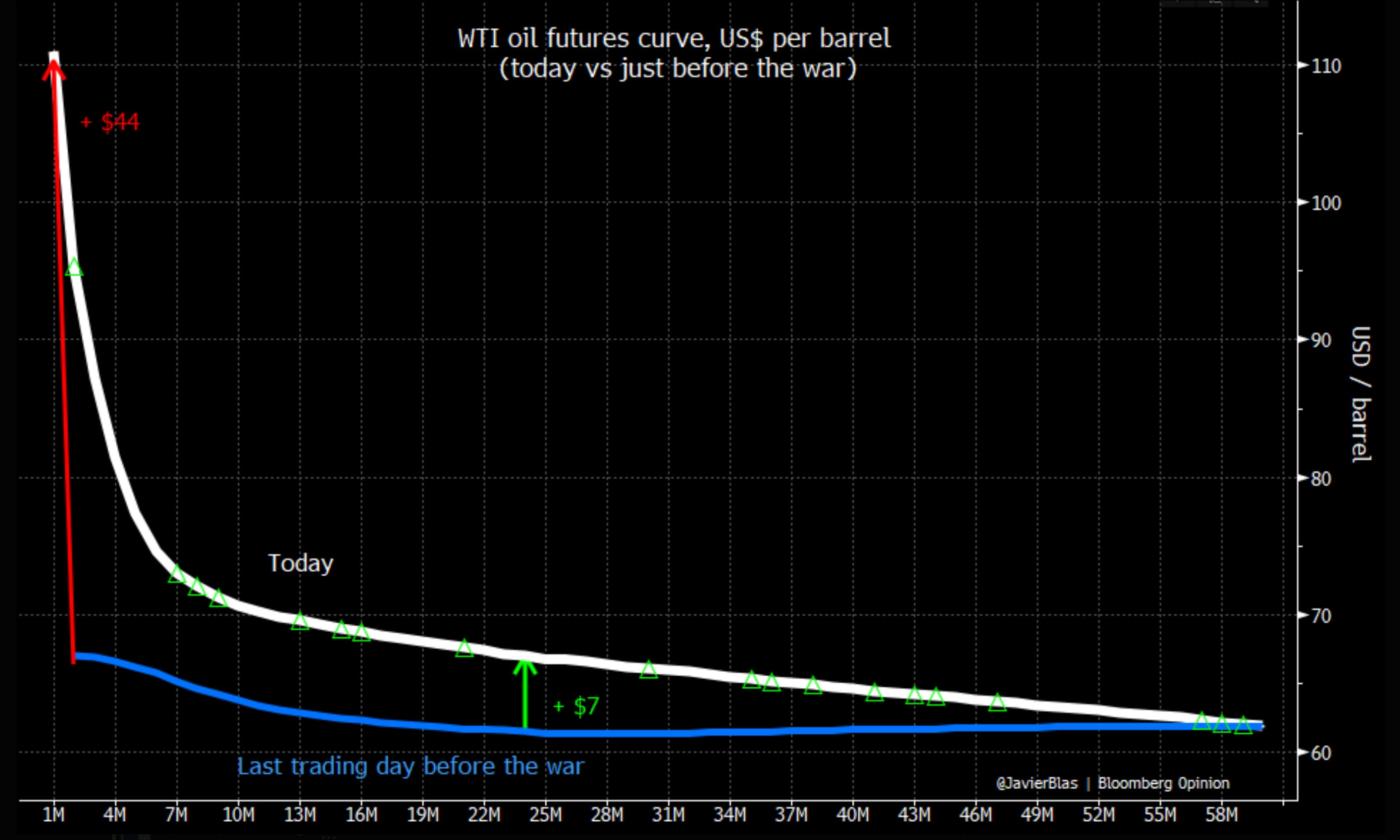 Others though will look at the futures market for confirmation. See? It’s predicting a cheaper price in the near future. Just look at the chart from Javier Blas.