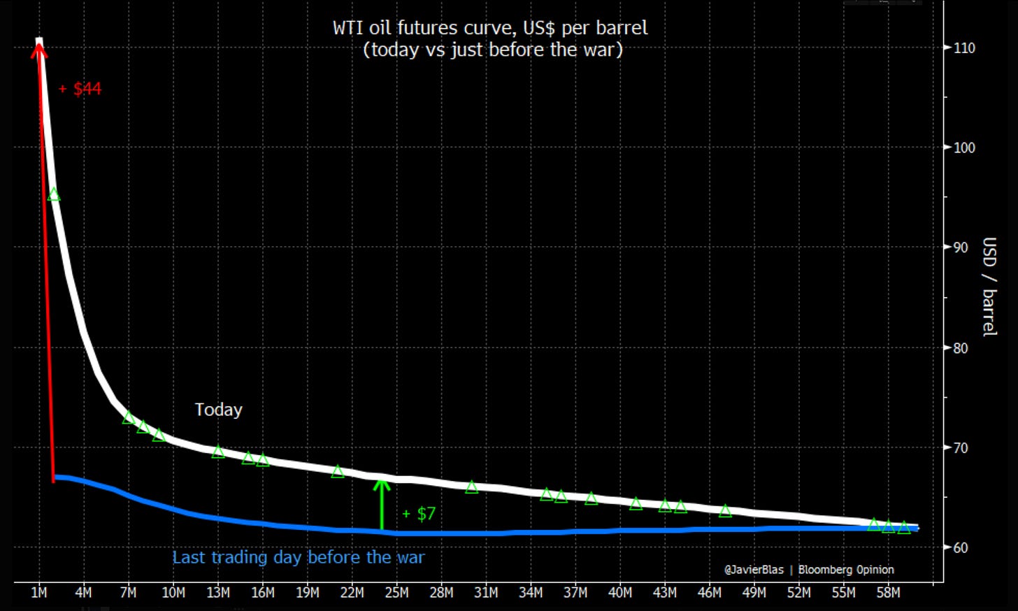 The Price Gap - few appreciate the magnitude of this deficit because the prices aren’t accurately reflecting it. Whether it’s the jawboning, or the belief that this war can end immediately, there’s plenty of reasons for skepticism. Ironically, the artificially lower prices actually forestall real conflict resolution, and in fact allows the US and Israel to press their attacks. This reinforces the market’s optimism because all they see are successes of targets being bombed and the tweets about Iran’s inevitable capitulation. The war, however, continues, and the SoH stays blocked. Yet, since the back of the curve is at $70/barrel, then surely we’re fine? We are not.