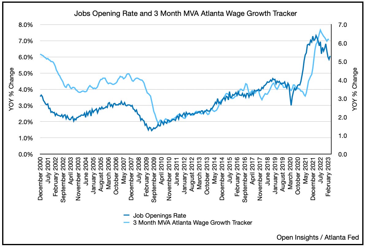 If we’re right though, the fall should be swift, and arguably shave about 1.5% from headline and Core CPI. So if Core CPI is running at 5.3%, all else being equal, we can expect Core CPI to also come down to ~3.8%. Then it comes down to services. Services is essentially wages, and wages are a byproduct of labor demand, and that appears to be softening.