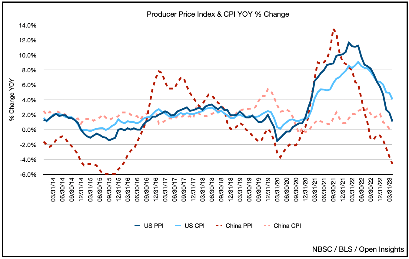 PPI also came in tame, and from a headline perspective, it wasn’t too egregious. All of this isn’t entirely surprising if we look overseas as well. China’s CPI and PPI have both been low and trended lower, even with their reopening. Unlike the West, thus far, the Chinese have refused to stimulate heavily. As supply chains have unsnarled post-COVID and consumer demand for durables have waned, the inflationary pressures on durable goods has subsided. Hence a relatively calmer PPI and CPI all-around.