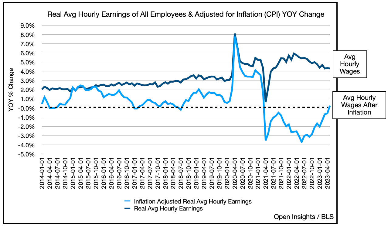Wage inflation is finally giving workers a taste that things are getting better (i.e., their wages are finally keeping up with inflation).