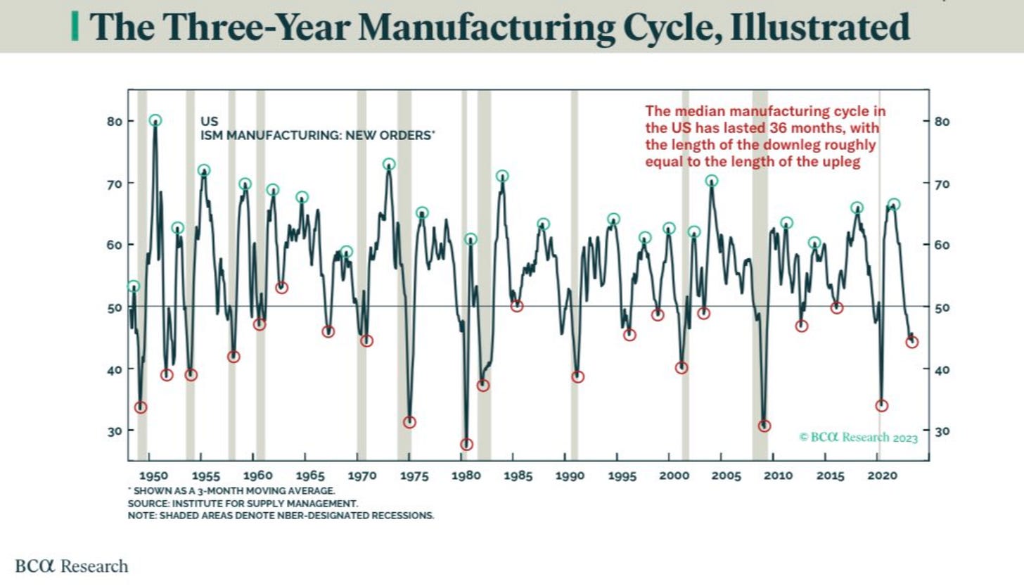 Demand isn’t that bad and the consumer isn’t stressed (yet). Interestingly, if manufacturing actually begins to pick up here, it may take the real economy up another notch (chart from a Peter Berezin, BCA tweet).