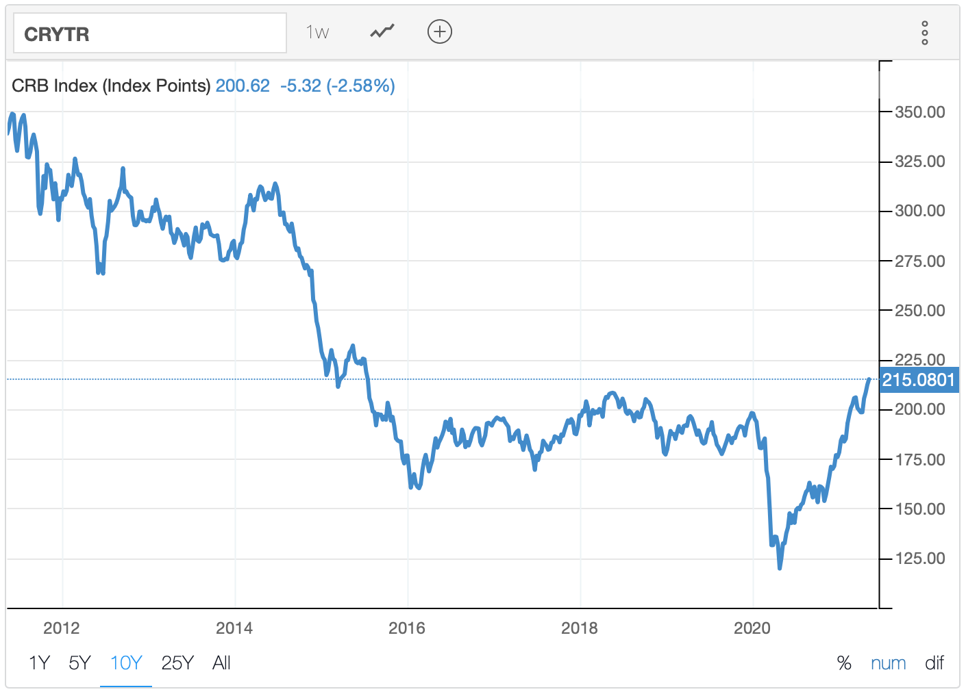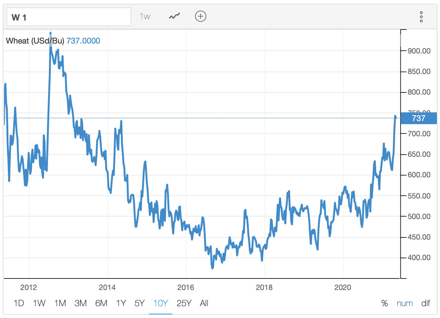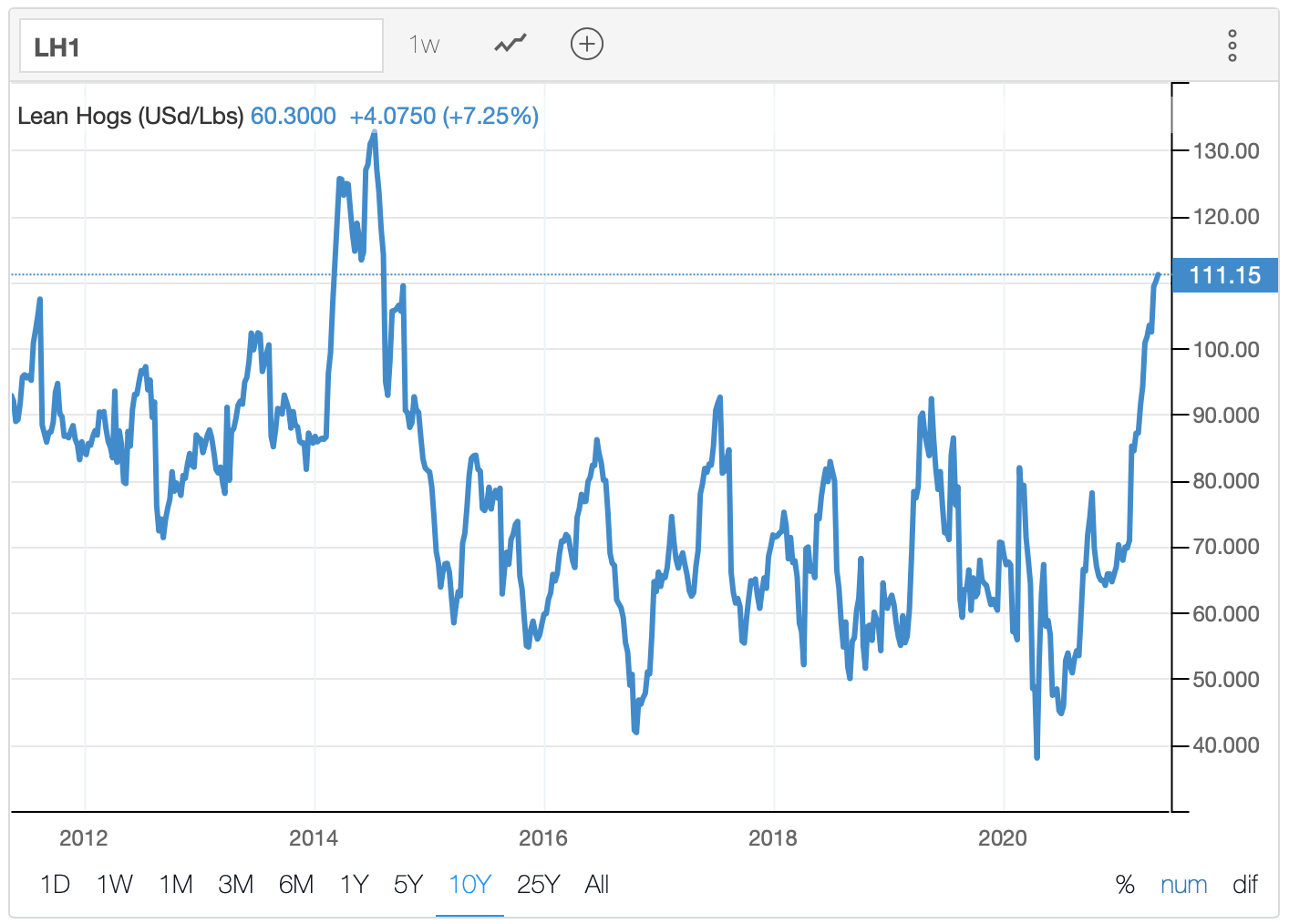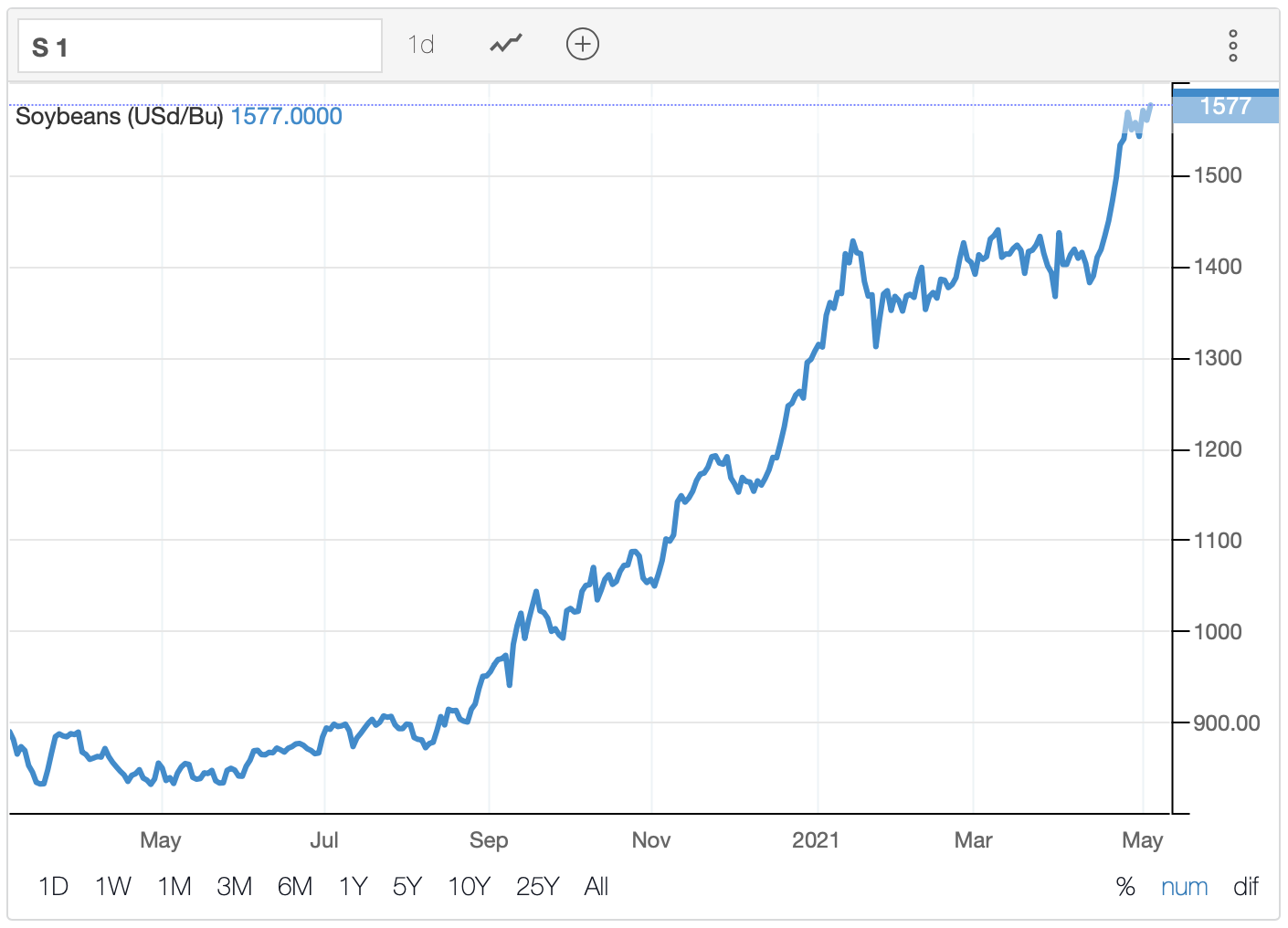 We’re 4 months into 2021 and a year out from when this COVID pandemic started. Now a central thesis that we’ve held for 2021 is that unprecedented fiscal and monetary spend will spur a dramatic bout of long-lasting and stubbornly high inflation. As the months have passed, we’ve seen the Wall Street Journal and the Financial Times pick up on this theme. Our forecast has been been proving true as commodity prices for all manner of commodities continue their rise. Let’s revisit some of the prices of the items we touched upon in our last snapshot two months ago.