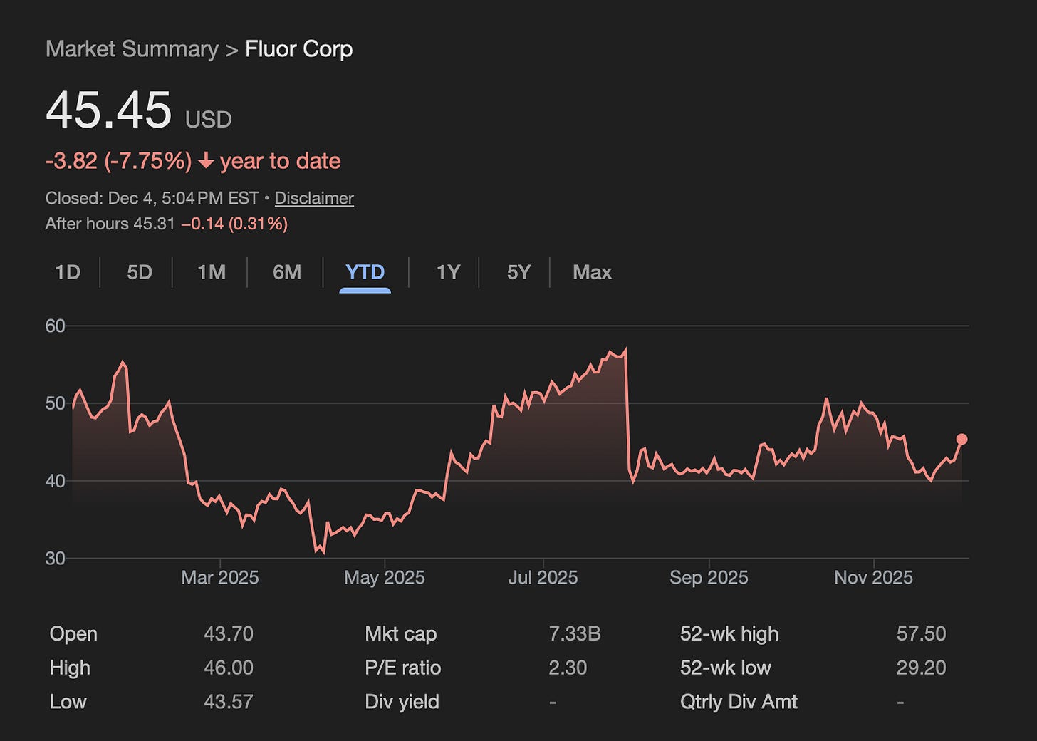 A month ago, before the recent spate of AI volatility, the stake was worth nearly $4B, which means you were buying FLR’s EPC business itself for $3B. Its stake in a small previously “immaterial” company had ballooned to be worth more than FLR’s entire organic business itself. Since October though, market volatility has halved the value of SMR, but at $22/share, or $2.4B of value ($2B post-tax) against, it still accounts for ~30% of FLR’s entire $7B of market cap or a third of its $6B enterprise value.
