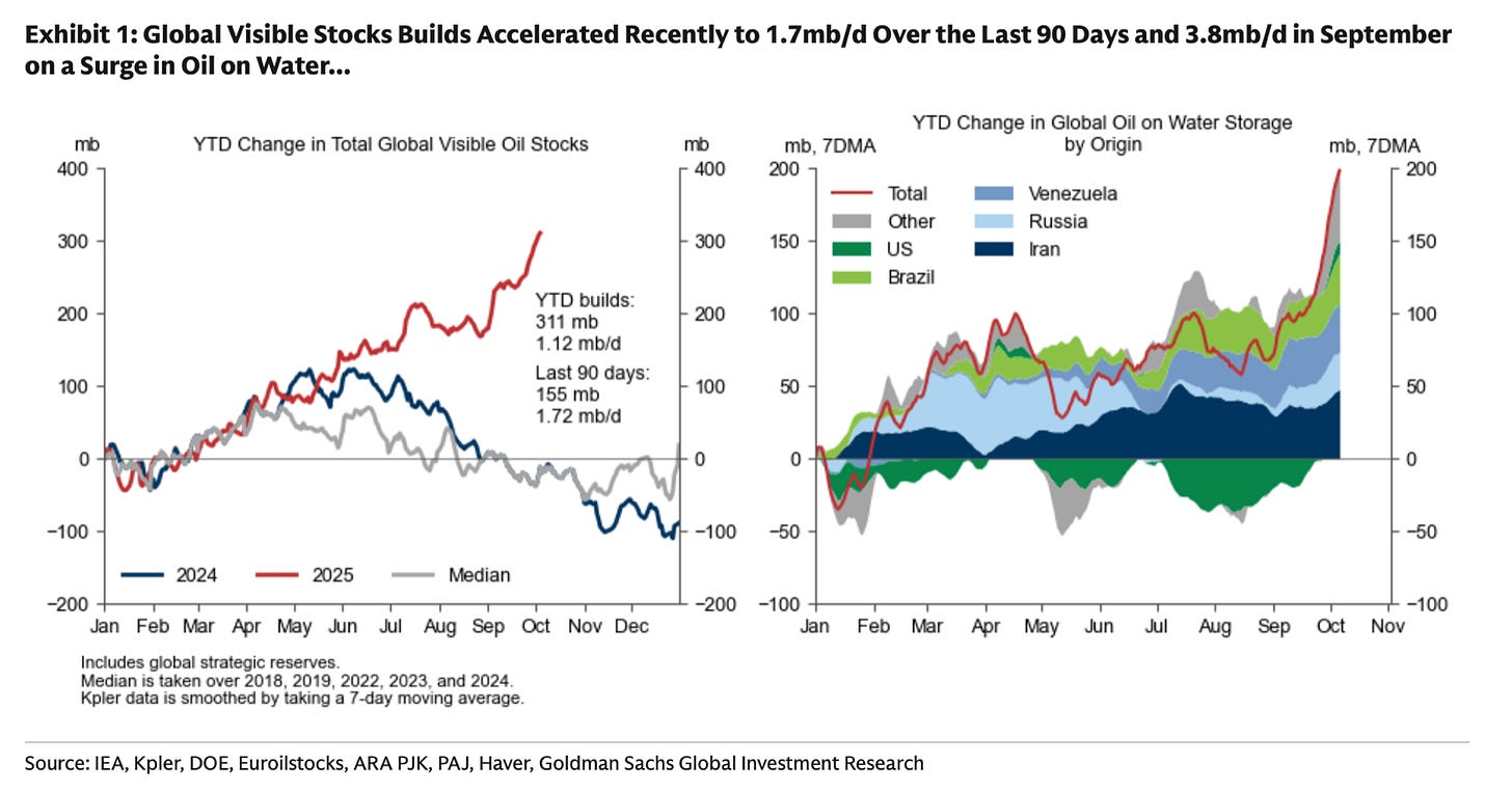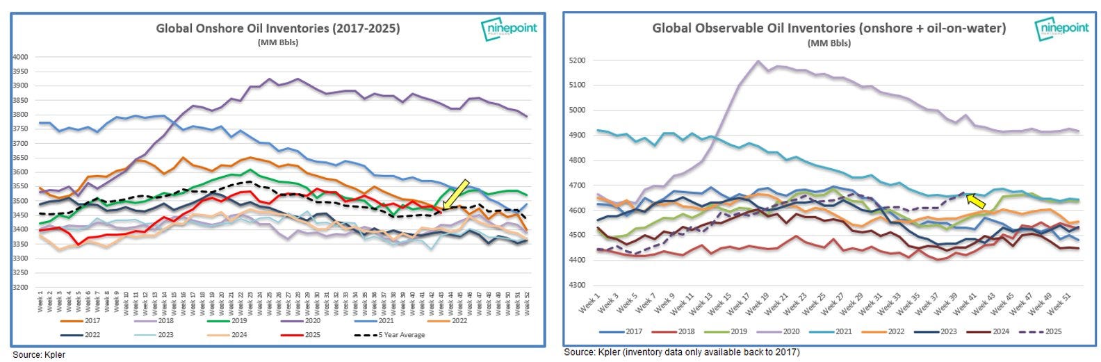 Suffice it to say, conditions today are extremely bearish as nearly every analyst anticipates more OPEC+ unwinding, more US production, and more oil from sanctioned countries. More, more, and more. The question is simply by how much. IEA has bandied about COVID like builds (+4M bpd), but last we checked the world wasn’t going through a pandemic shut-down. Just taking a step back and using satellites, inventories in the nascent Q4 time period have been building in the recent weeks, but not anywhere near expectations.