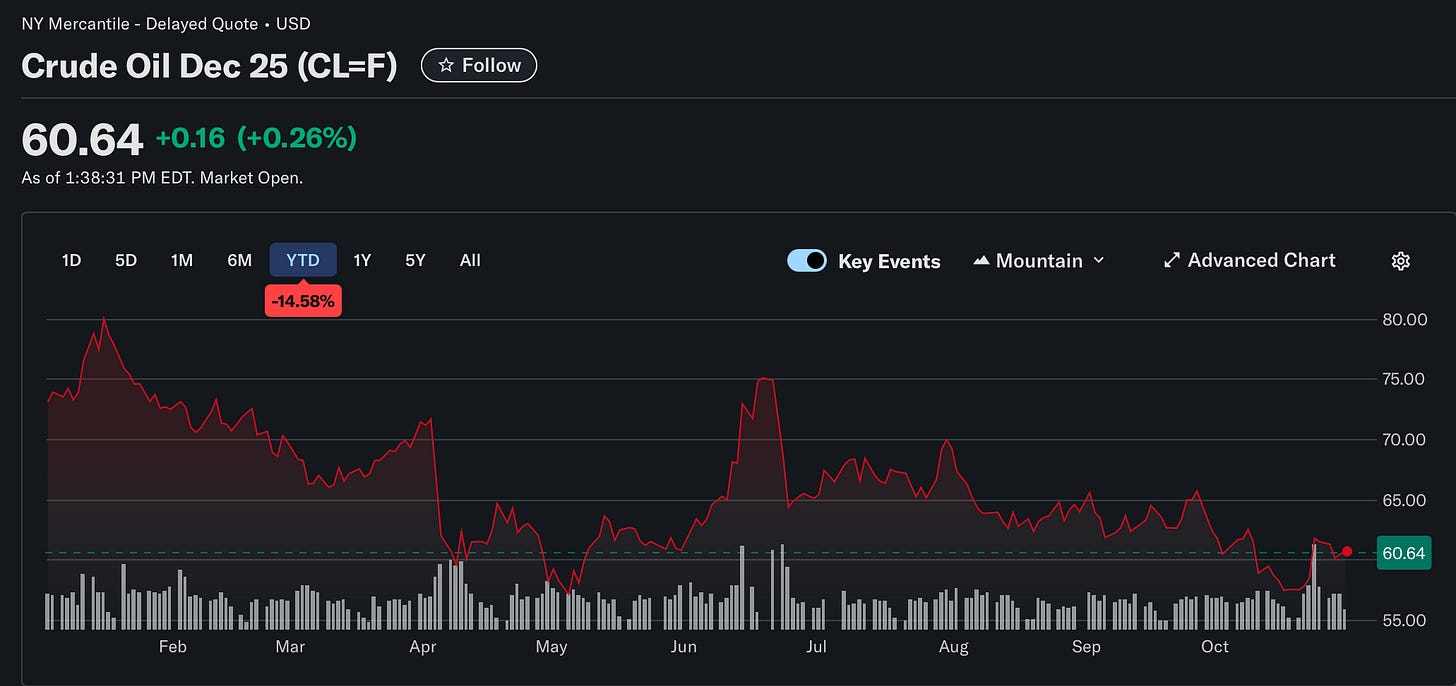 In the past few weeks in October, they’re range bound, but in a low $57-61/barrel range.